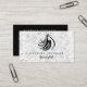 Elegant grey marble with feminine silhouette, professional business cards. Back of cards feature, black background colour with white text, template text lines for name, title, phone, email, website and address.