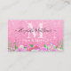 Personalise this business card with your own initials, name and contact details. This trendy pink glitter floral business card can be used for a variety of jobs. PLEASE NOTE: If you would like to keep the swirls at the end of the name, then please do not remove the symbols either side.