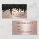 Hair Stylist Gold Scissor Rose Gold & Black Glitter Drips Appointment Reminder Card.