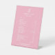 A professional pedestal sign for a hair salon, hair stylist or hairdresser. Perfect for displaying a service menu or price list. It features a modern and simple design with a scissors graphic. This sign is in a pink colorway. The text templates can be easily customised to suit the requirements of your business.