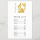 Stylish elegant hair salon / spa price list services flyer template featuring a faux gold long haired woman head silhouette (you can replace it with your logo!) on a white clear (changeable colour) background.+++++++++ Personalise with your list of services and with other details on the reverse! +++++++ Suitable for hair / beauty / makeup / cosmetics / massage salons.