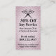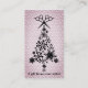 A business card featuring a coupon or gift for a salon with a grey background with white chevron stripes, with a christmas tree made of black snowflakes. Perfect for hair stylists, hairstylists, cosmetologists, cosmetology, salons and more!