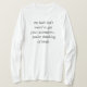 I love this shirt. I had written to the artist asking her if this picture was available on a shirt, and she wrote me back telling me where I could find the shirt. These shirts can be custom made to have a different saying. I loved this saying and went with it. The artist wrote me back later to tell me that she had seen my order go through. How's that for service? Pretty special. It's just as displayed. Perfect!