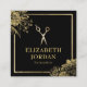 Hair Stylist Beauty Salon Black & Gold Botanical Square Business Card