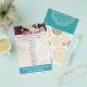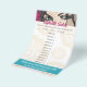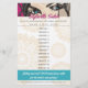Flyer or rack card for a hair stylist, makeup artist or beauty salon featuring a modern, trendy woman's image with pretty blue eyes and decorative, ornate emblems and your choice of color scheme.