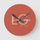 Hair Stylist Burnt Orange Beige Monogrammed Round Clock