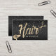 Hair Stylist Gold Typography Modern Black Glitter Salon Business Cards.