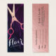 Hair Salon / Hairstylist/ Hairdresser / Beauty Salon / Makeup Artists / Stylists / Wedding Planners / Event Planners / Consultants / Boutique Owners / Fashionistas Appointment Card Templates - Modern Faux Rose Gold Scissors on Elegant Black and Purple Hair Pattern Background.