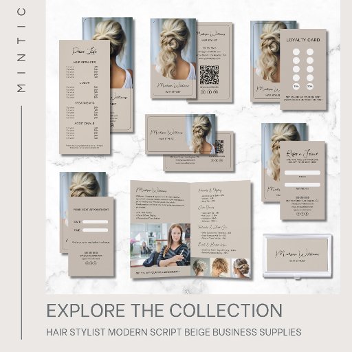Hair Stylist Modern Script Beige Business SuppliesDesigned by Laura I.