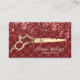 Hair Stylist Luxury Red Glitter Drips Gold Scissor Beauty Salon Business Cards.