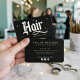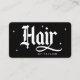 Hair Stylist Modern Hair Salon Branding Black Business Card features beautiful typography and your custom text on front and back. Featuring modern blackletter script font typography on a simple black background. A full brand identity suite available, designed to look cohesive, feel aligned, and elevate your business from day one. All items in this collection are designed to be easily customizable. ©Marisu Valencia