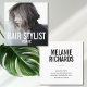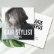 Hair stylist modern photo square business card. The elegant and clean layout on this photo business card allows you to showcase your own photo on the front side of the card. Your profession and name are styled in modern straight bold typography letters. Design suitable for hairstylists, makeup artists, bloggers photographers, and other creative businesses. The photo on the business card is only a sample photo, please upload your own. Designed by Luxbelle design.