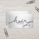 Hair Stylist Modern Silver 3D Script Salon Business Card