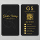 Elegant black and gold hair stylist business card featuring a bold monogram, modern QR code, and customisable layout. Perfect for hairstylists, salon professionals, and beauty experts who want a stylish, professional, and luxury-inspired branding card.