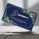 Hair Stylist Rose Gold Geometric Greenery Navy Business Card