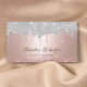 Modern Silver Glitter Drips Rose Gold Makeup Artist Hair Salon Business Cards.