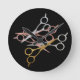Hair Stylist Rose Gold Silver Glitter Scissors Round Clock