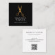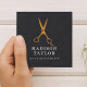 Modern chic style hair stylist business card design. The design features a graphic illustration of scissors with classic typography. A black background contrasts beautifully with the gold colour scissors and minimalist type treatment. Customised with your name or company name and title or slogan. The reverse side features a white background with contact information designed in a clean and minimal layout with your QR code (option to delete). Part of a collection with matching items. Contact me via the chat button for any custom requests. ©Marisu Valencia
