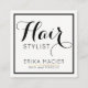 An elegant and simple design for a hair stylist, with your name or business name on a white square background