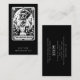 A unique tarot style hair stylist black business card featuring a skeleton with tools of the stylist. A unique style with a touch of humour. Purchase in larger quantities for a volume discount.