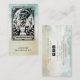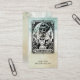 A unique tarot style hair stylist business card featuring a skeleton with tools of the stylist. A unique style with a touch of humour.