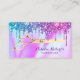 Hair Stylist Unicorn Glitter Drips Beauty Salon Loyalty Punch Cards.