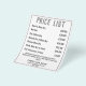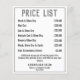 Price-list Flyer for a Hairdresser, Hair Stylist, or Hair Salon. Hairdresser leaflet, Hair Stylist leaflet, or Hair Salon Leaflet. Alter prices as you wish. Displays up to 7 items and prices plus contact information. Hairdresser flyer, Hair Stylist flyer, or Hair Salon Flyer. Black and white.