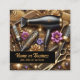 Background image of hairdresser tools in shades of black and gold. All text is easily customisable.