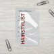 Bold modern new Hairstylist appointment reminder business cards combination created with hairstyling tools graphic in the background in a vertical editable layout in a simple minimalist design you can customise online for a Hair Stylist, Hairdresser, or Hair Salon.