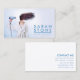 Modern business card design for hairstylists, hairdressers and hair salons. The two sided design features a photo of a woman drying her hair. The photograph shows a customer who seems to have a bad hair day and is in need of a hair stylist. Having your hair done is not just about looking good, it is also about feeling great and boosts a person's confidence and self esteem. Your name and business are featured prominent on the front of the card. All your contact details appear on the back.