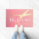 Hair Salon / Hairstylist / Hairdresser / Beauty Salon / Makeup Artists / Stylists / Wedding Planners / Event Planners / Consultants / Boutique owners / Fashionistas Personalised Welcome Doormat Templates - Modern Faux Gold Scissors on Pink Gradient Background.