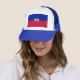 The Haitian national flag has two horizontal bands in blue and red. In the centre of the flag is the Haitian coat of arms, on a white square. It was originally used in 1806, and has a 3:5 ratio.