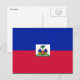 The flag of Haiti consists of two horizontal bars, blue over red, defaced by a white panel bearing the Haitian coat of arms.