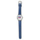 The blue band is the right color for a boys watch. My grandson loves lacrosse and the watch is easy to put on. He is ten years old. The lacrosse picture is very clear and I like the blue hands on the watch. It's good for teaching time.