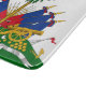 This design features the national coat of arms of Haiti (officially known as the Republic of Haiti), which is a country on the island of Hispaniola in the Greater Antilles archipelago of the Caribbean Sea. Haiti is located to the east of Cuba and Jamaica and south of The Bahamas and the Turks and Caicos Islands. Haiti occupies the western portion of Hispaniola, the island it shares with the Dominican Republic. Haiti is the most populous country in the Caribbean. The capital and largest city of Haiti is Port-au-Prince.