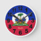 Haitian Flag & Haiti Clock, large Numbers / emblem Round Clock