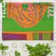 African Pot: The large orange shape represents a beautifully decorated African pot, grounding the artwork in cultural significance.