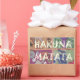 The phrase "Hakuna Matata" unifies the design, placed centrally to draw attention and reinforce the message.