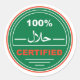 This sticker is a certification mark indicating that the product it is affixed to is Halal, meaning it adheres to Islamic dietary laws. The word "Halal" is written in both Arabic and English. This sticker can be used on food packaging, containers, and labels to signify that the product is permissible for consumption by Muslims.