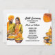 A beautiful watercolor graphic features hands in the top right corner holding haladi spice and bowls filled with the powder in the bottom right one. An Indian bride and groom are sitting cross legged next to each other wearing pale green and yellow orange traditional wear. They are sitting behind two large bowls piled high with haladi and some floral flowers. The graphics are placed against a white background and the yellow orange robe and spice pop against the starkness. Black text templates appear in the middle for your custom wording. This elegant, trendy and modern design has a further template on the back for additional details you may want to add. If not required, simply delete the wording. Celebrate this pre wedding ceremony with friends and family to ensure that the bride and groom receive protection, blessings and purificaton. This invitation is ideal for any Sangeet; Hindi; Hena; Mehndi or Mhindi ceremony.