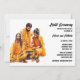 A beautiful watercolor graphic featuring an Indian bride and groom wearing traditional wedding outfits crouching down behind a large pot filled with turmeric spice. Next to them is an Indian man with long hair sitting cross legged on the ground, holding turmeric powder in his hand. The people are set against a white background that has black text templates on it for your custom wording. This elegant, trendy and modern design has a further template on the back for additional details you may want to add. If not required, simply delete the wording. Celebrate this pre wedding ceremony with friends and family to ensure that the bride and groom receive protection, blessings and purificaton. This invitation is ideal for any Sangeet; Hindi; Hena; Mehndi or Mhindi ceremony.