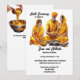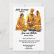 Celebrate the bridal couple with this generativecontent watercolor Indian woman wearing an orange yellow coloured sari. She is sitting cross legged behind a bowl filled with turmeric powder and next to the bride and her father also sitting behind turmeric filled bowls. They are all dressed in yellow orange traditional clothing and are attending a Haldi ceremony to give blessings, protection and purfication of the bride and groom prior to their wedding day. Black templates for your custom wording appear on the stark white background and a further one on the back for additional information that your guests may require. If no extra detail is needed, siimply delete the wording on the back. This striking graphic design is ideal to celebrate Mehndi; Mehendi; Sangeet or any ethnic Asian celebration in favour of a bridal couple.