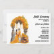 A beautiful watercolor graphic featuring an Indian bride and groom wearing traditional wedding outfits standing below an arch adorned with gorgeous yellow orange flowers. At the foot of the arch are pots filled with turmeric ready for family and friends to use to bring blessings, protection and purification to the bridal couple. This elegant, trendy and modern design has custom black text templates for your custom wording all set against a white background. Celebrate this pre wedding ceremony with friends and family. This invitation is ideal for any Sangeet; Hindi; Hena; Mehndi or Mhindi ceremony.