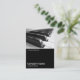 A business card template design with a white edged black lower half. The front design includes a photo or artwork in the top half. The same theme is repeated on the back without the image, allowing room for other details and further customisation. The three squares motif used as a decorative feature on the back is from one of Zazzle's useful picture fonts and can be used as a decorative feature or replaced with your own logo or decoration.