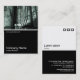 A business card template design with a white edged black lower half. The front design includes a photo or artwork in the top half. The same theme is repeated on the back without the image, allowing room for other details and further customisation. The three squares motif used as a decorative feature on the back is from one of Zazzle's useful picture fonts and can be used as a decorative feature or replaced with your own logo or decoration.