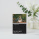 A business card template design with a white edged black lower half. The front design includes a photo or artwork in the top half. The same theme is repeated on the back without the image, allowing room for other details and further customisation. The three squares motif used as a decorative feature on the back is from one of Zazzle's useful picture fonts and can be used as a decorative feature or replaced with your own logo or decoration.
