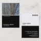 A business card template design with a white edged black lower half. The front design includes a photo or artwork in the top half. The same theme is repeated on the back without the image, allowing room for other details and further customisation. The three squares motif used as a decorative feature on the back is from one of Zazzle's useful picture fonts and can be used as a decorative feature or replaced with your own logo or decoration.