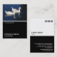 A business card template design with a white edged black lower half. The front design includes a photo or artwork in the top half. The same theme is repeated on the back without the image, allowing room for other details and further customisation. The three squares motif used as a decorative feature on the back is from one of Zazzle's useful picture fonts and can be used as a decorative feature or replaced with your own logo or decoration.