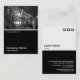 A business card template design with a white edged black lower half. The front design includes a photo or artwork in the top half. The same theme is repeated on the back without the image, allowing room for other details and further customisation. The three squares motif used as a decorative feature on the back is from one of Zazzle's useful picture fonts and can be used as a decorative feature or replaced with your own logo or decoration.