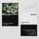 A business card template design with a white edged black lower half. The front design includes a photo or artwork in the top half. The same theme is repeated on the back without the image, allowing room for other details and further customisation. The three squares motif used as a decorative feature on the back is from one of Zazzle's useful picture fonts and can be used as a decorative feature or replaced with your own logo or decoration.